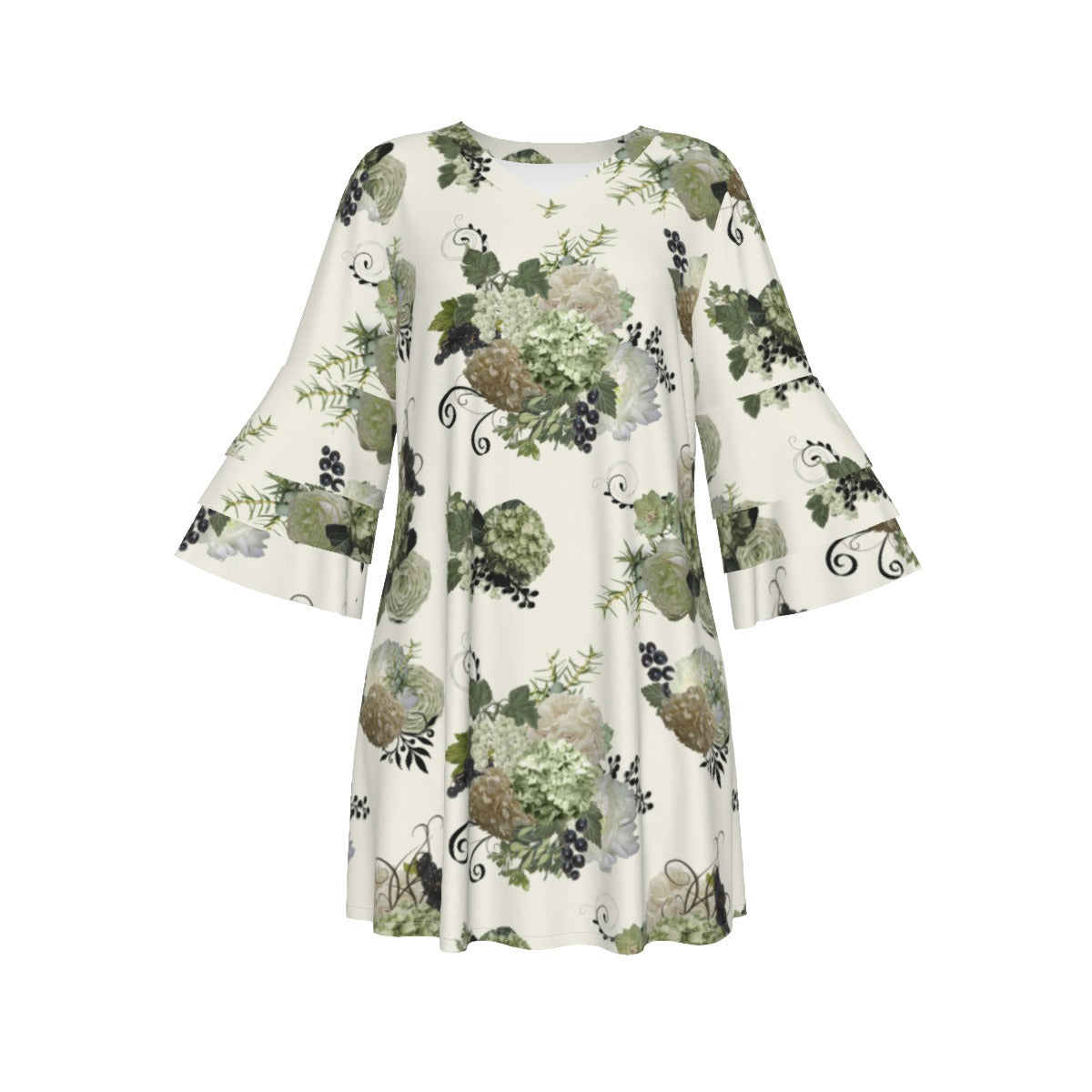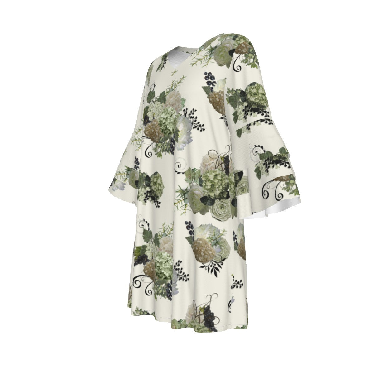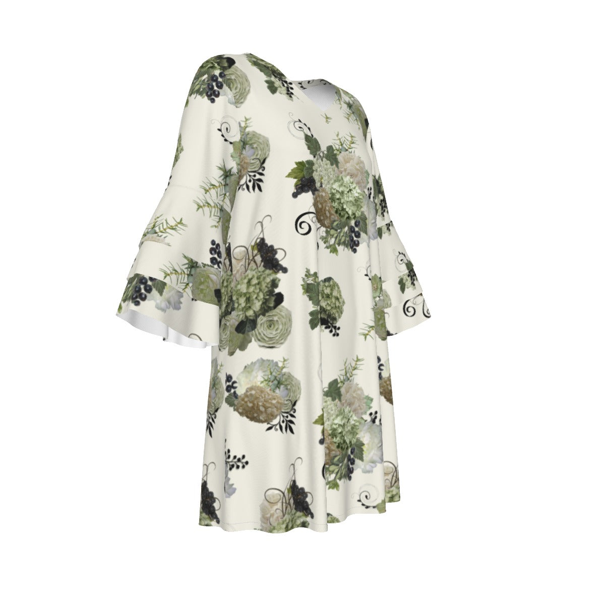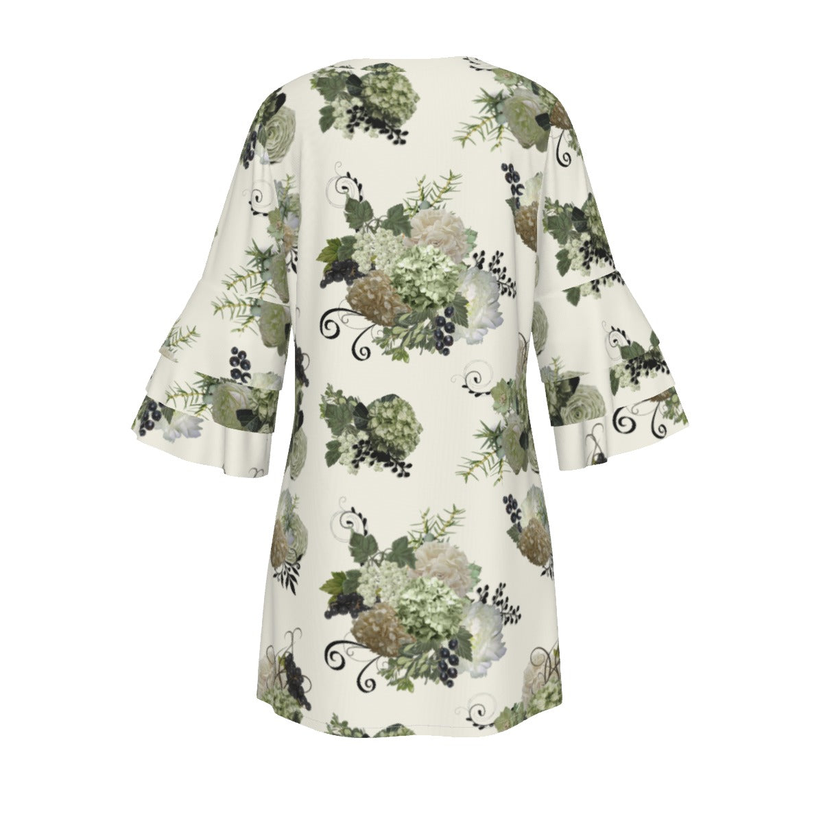 Sage Floral Ruffle Sleeve Dress