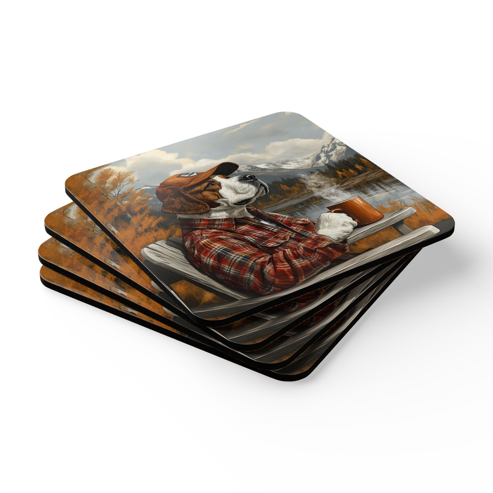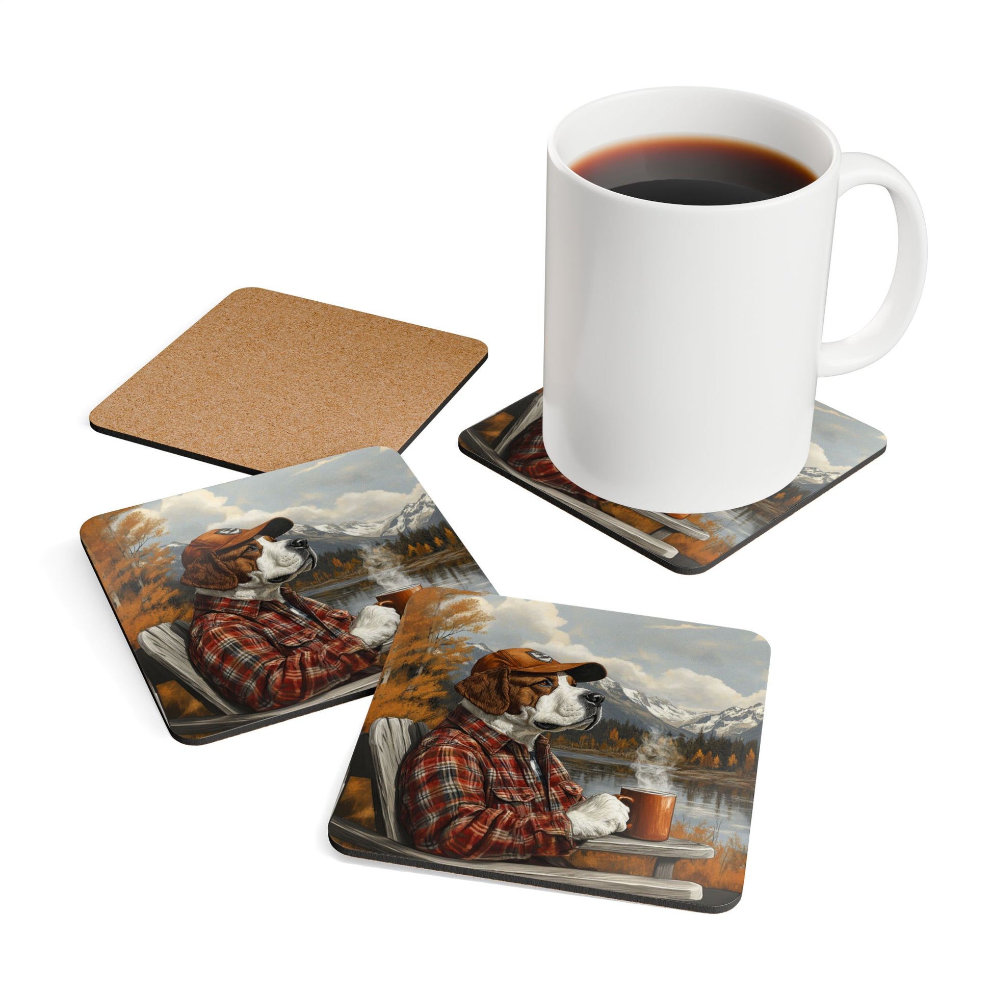 Bernie's in his happy place and he would love to hold your mug of coffee. This set of 4 coasters are great for the cabin or the man cave and make a fun gift. They are made with a high-gloss top and feature a cork back to prevent sliding.