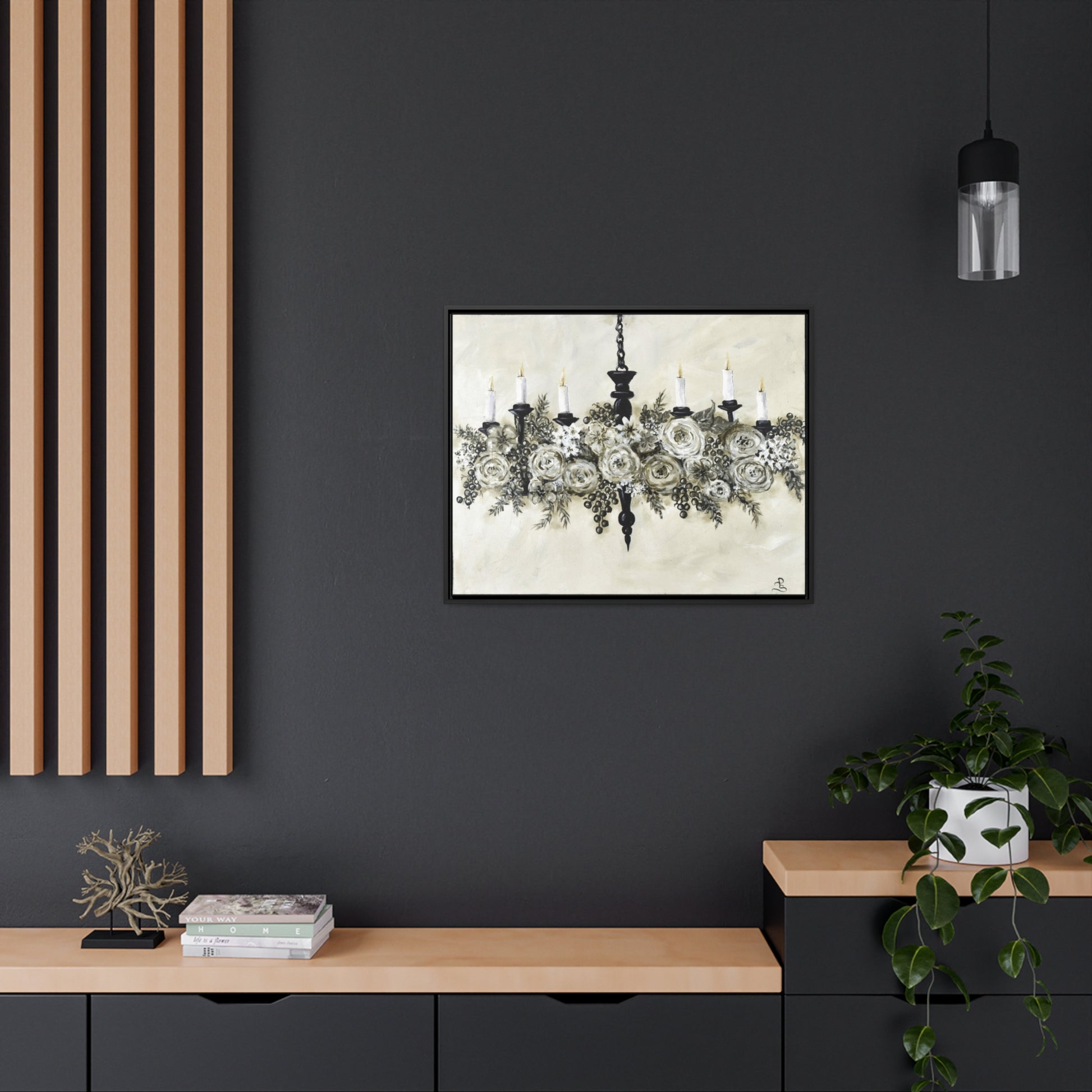 "Chandelier Garland" wood framed canvas print
