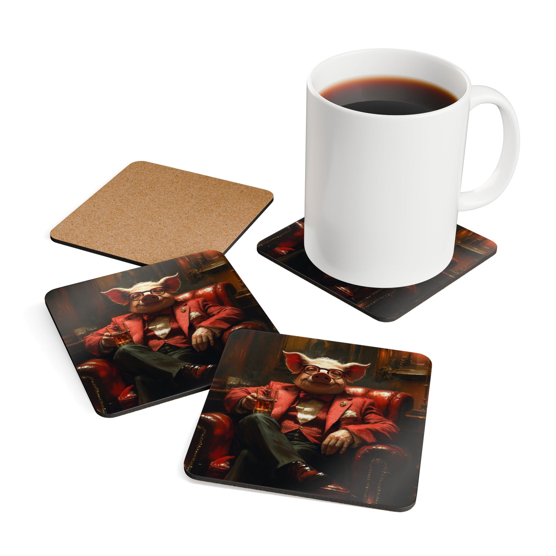 Ferdinand is quite the dapper pig. He'll bring a touch of class to your home decor. Along with a smile. This set of 4 coasters make a great gift as well. They are made with a high-gloss top and feature a cork back to prevent sliding.