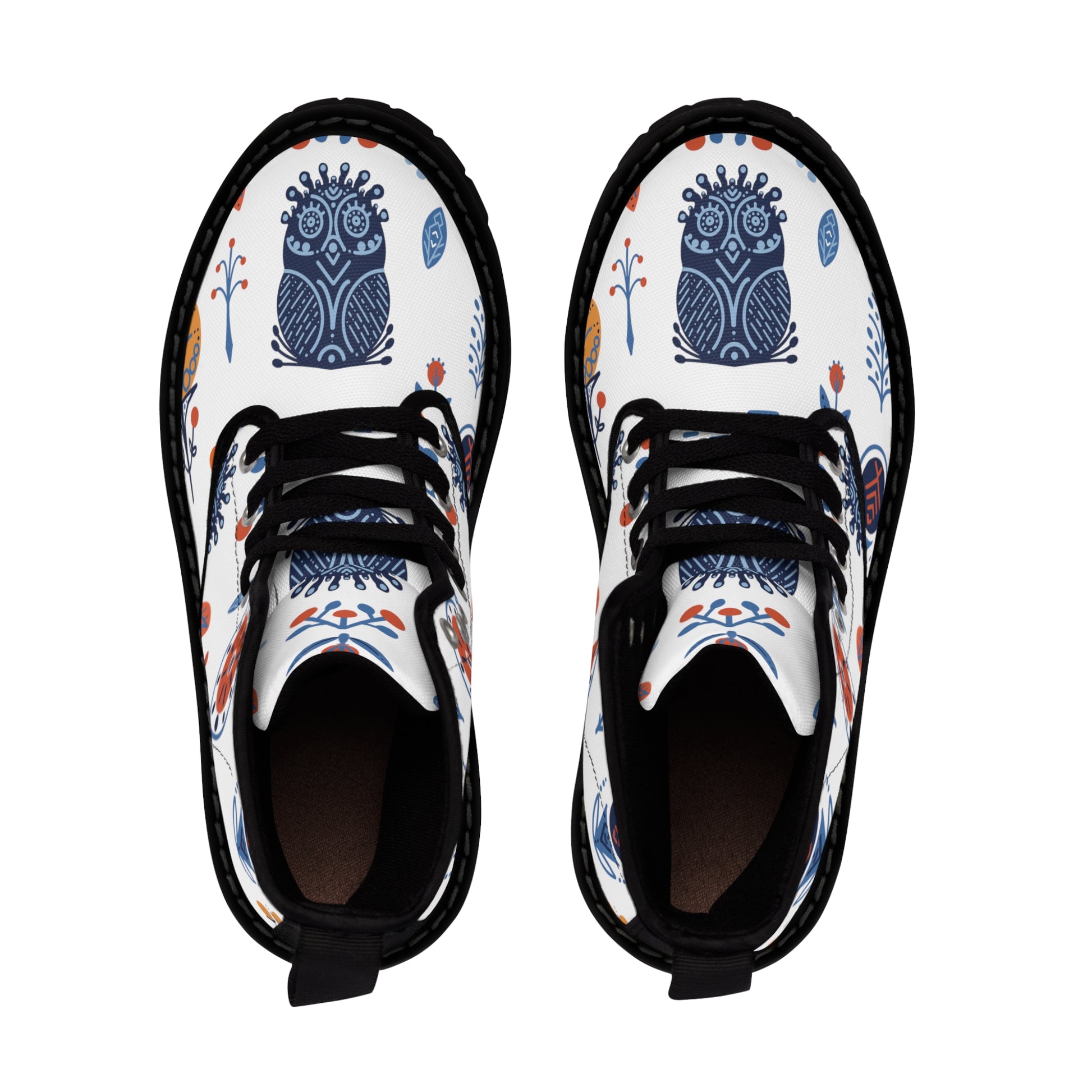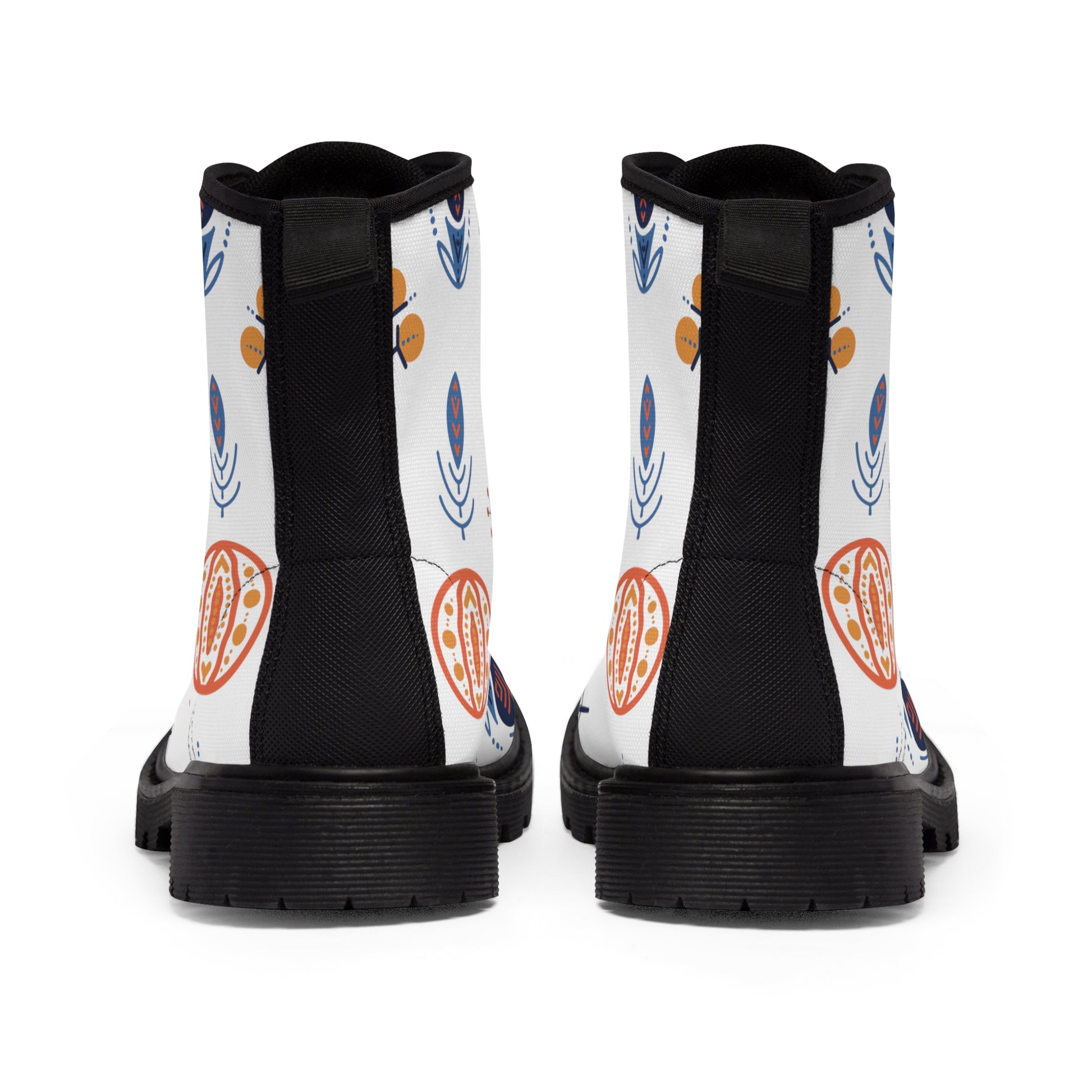 Some fun for your feet! Canvas boots in a folk art print will add pizzazz to any outfit!