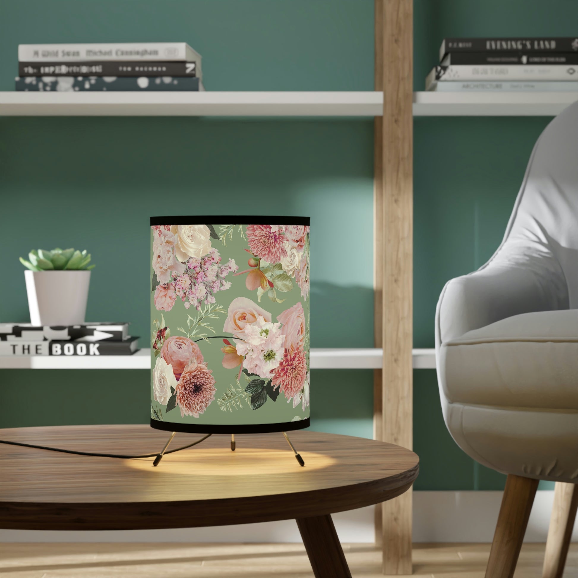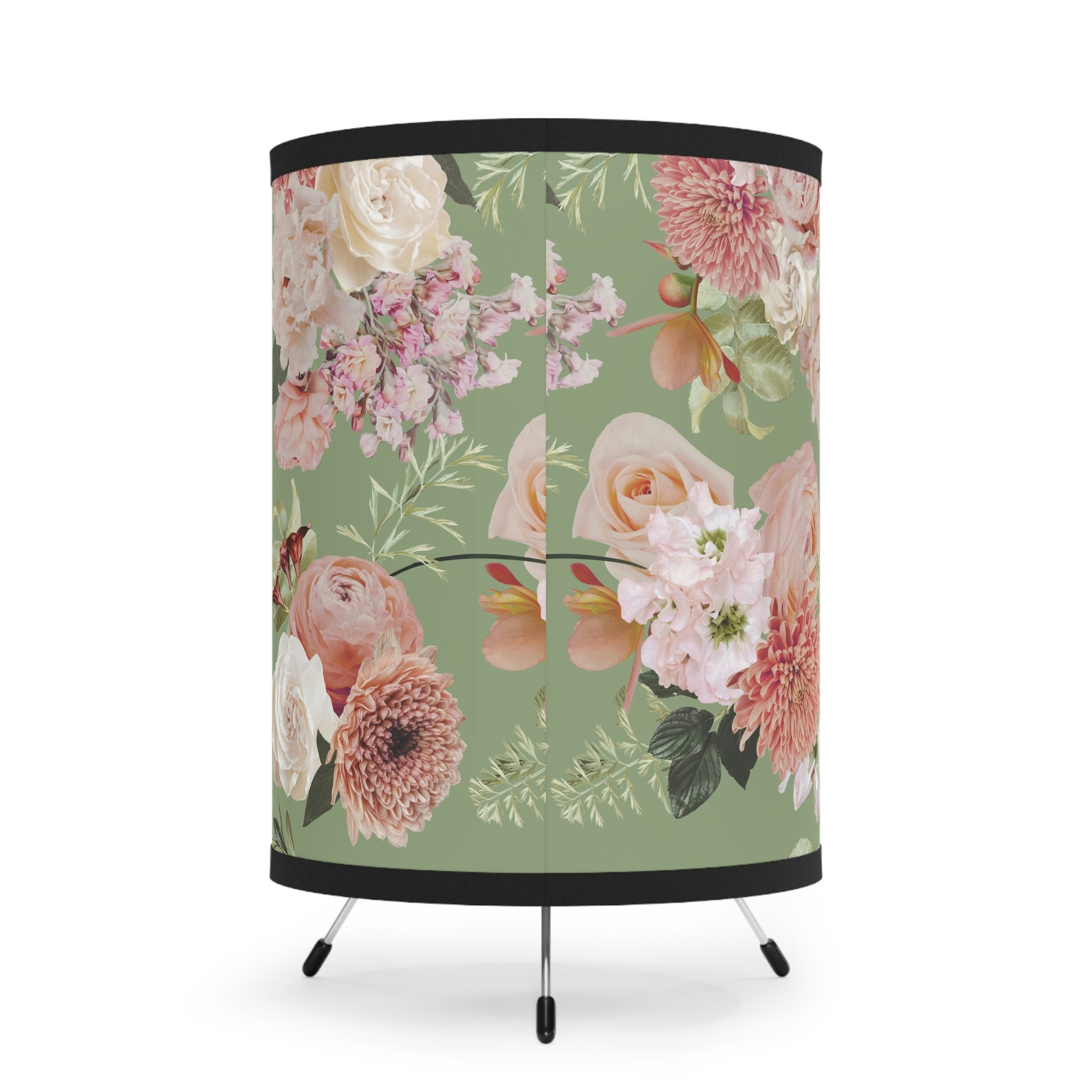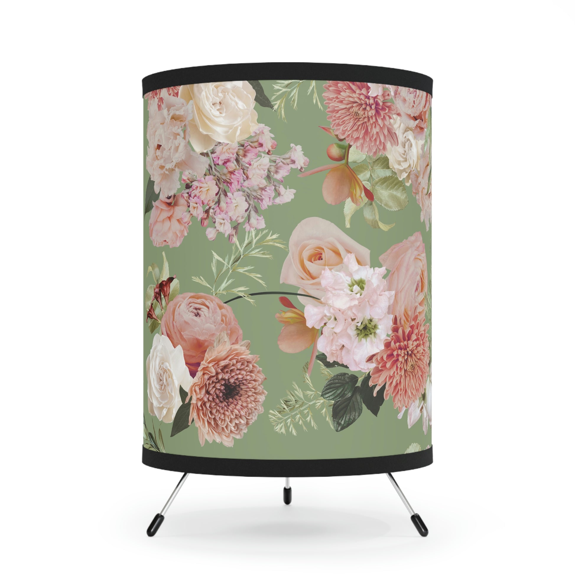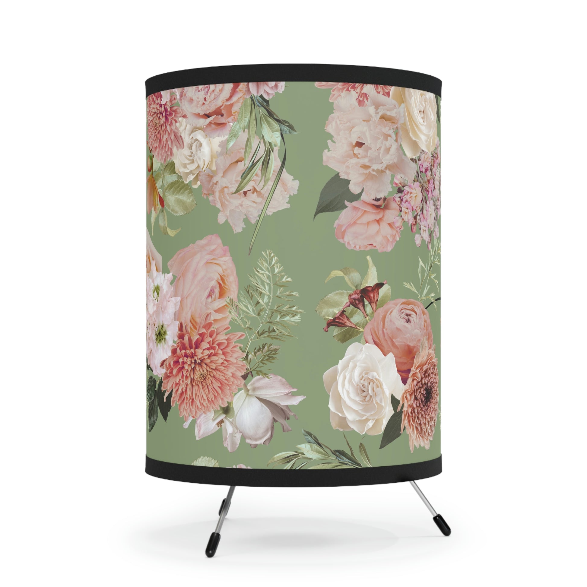 Add a pretty accent to any room with this sage and peach floral. Just as pretty on as off, a galvanized steel tripod base, this lamp delivers both high-end durability and a unique decorative touch. NB! The lamp features a type A plug with two pins, which makes it suitable for the sockets used in the USA and Canada.